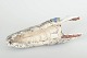 Unique hand-modelled stoneware sculpture with raw grey surface, decorated with a blue glazed band and white horn-like forms. An expressive, figurative work with strong artistic character.