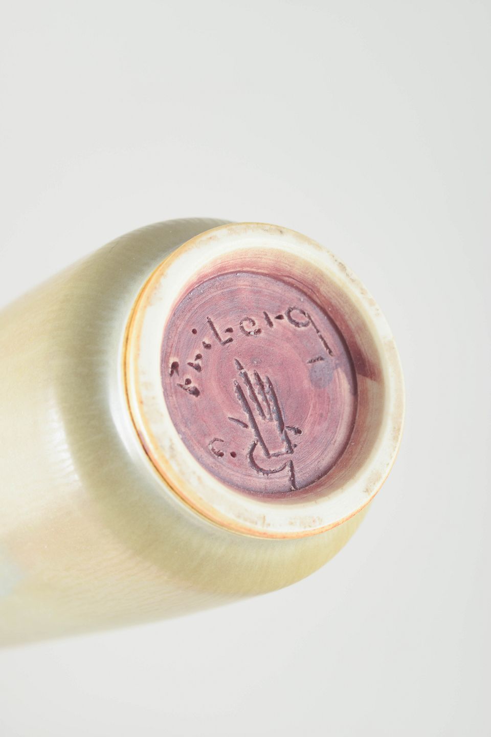 Berndt Friberg (1899–1981) var en af Nordens mest raffinerede keramikere og tilknyttet Gustavsberg fra 1930’erne. Kendt for sine perfektionistiske former og subtile sangoku- og hare-pelsglasurer, anses hans arbejder i dag for højdepunktet af svensk modernistisk keramik.