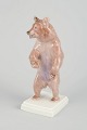 Porcelænsfigur af stående bjørn med naturlig positur, håndmalet i brunlige nuancer med fine detaljer og blank glasur. Monteret på rektangulær fod. 1. sortering.