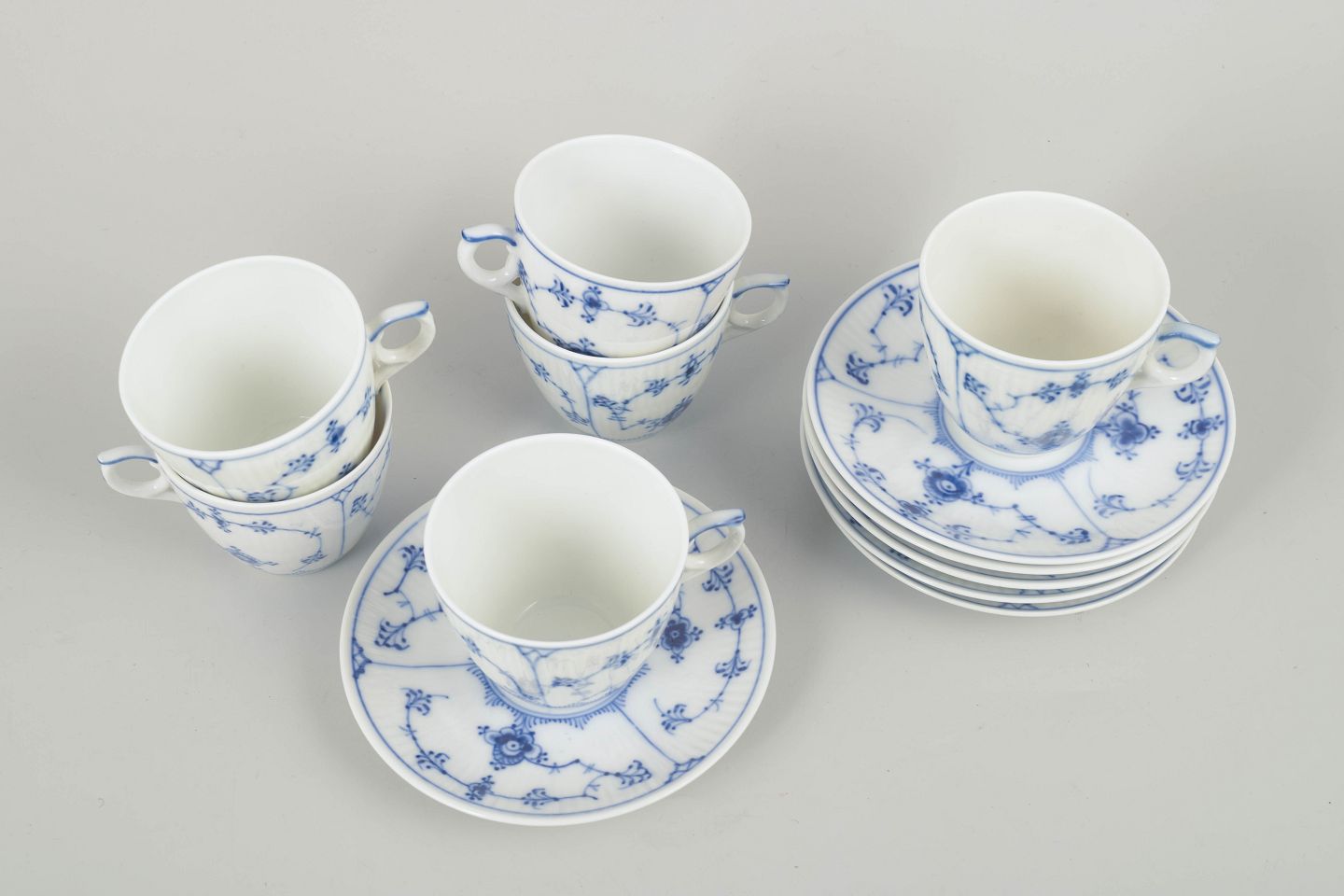 Blue Fluted Plain – Set of Six Coffee Cups with mathing saucers, 1920s.