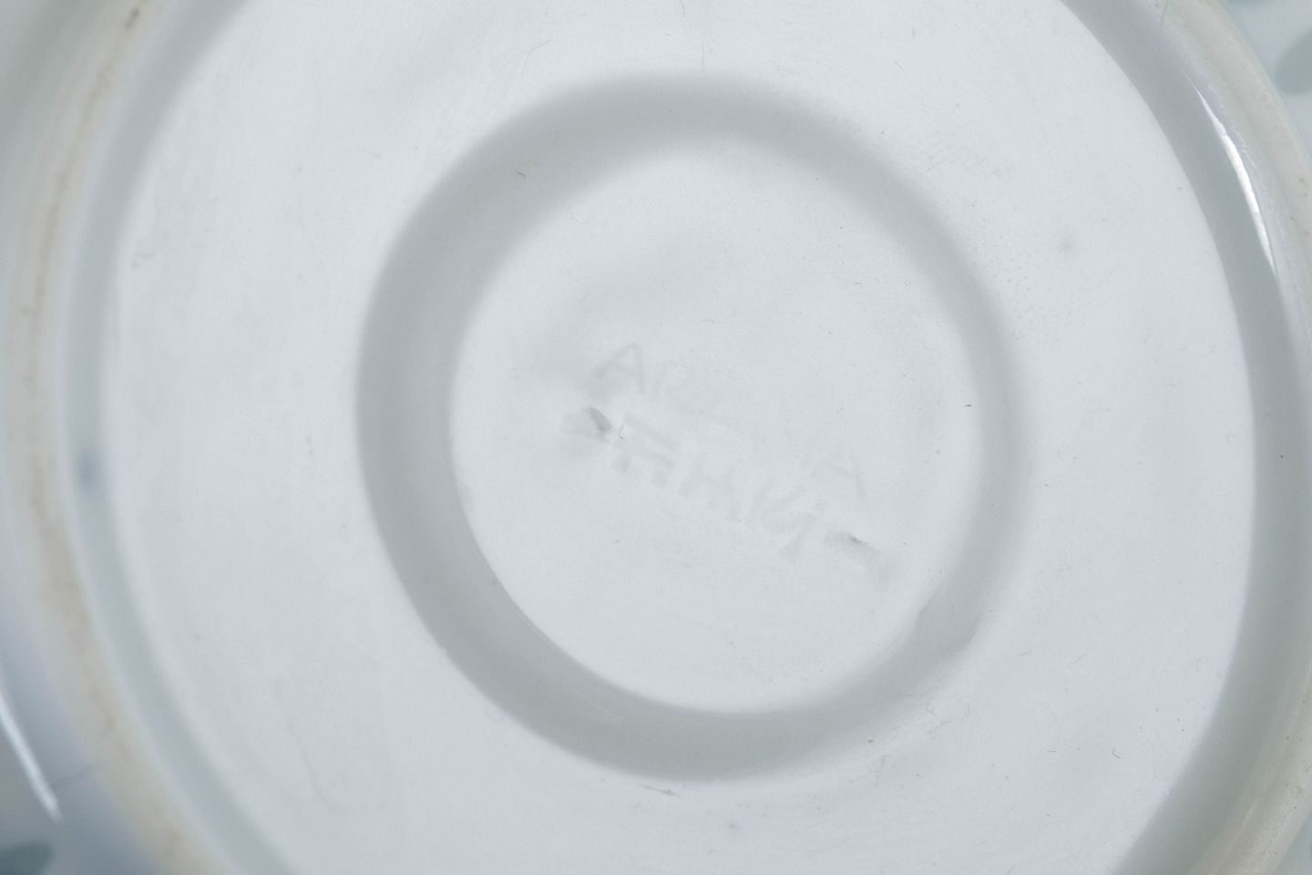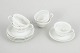 Større sæt bestående af fem mokkakopper med tilhørende underkopper i hvidt porcelæn med gennembrudt “rice porcelain”-dekoration. De fine, aflange perforeringer udfyldt med transparent glasur giver porcelænet et let, næsten translucent udtryk. De enkle, harmoniske former er karakteristiske for Friedl Holzer-Kjellbergs sene modernistiske design for Arabia.