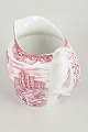 Kande i fajance, dekoreret i rød transferware med borgmotiv og ornamenteret bort, fra serien Olde Country Castles.