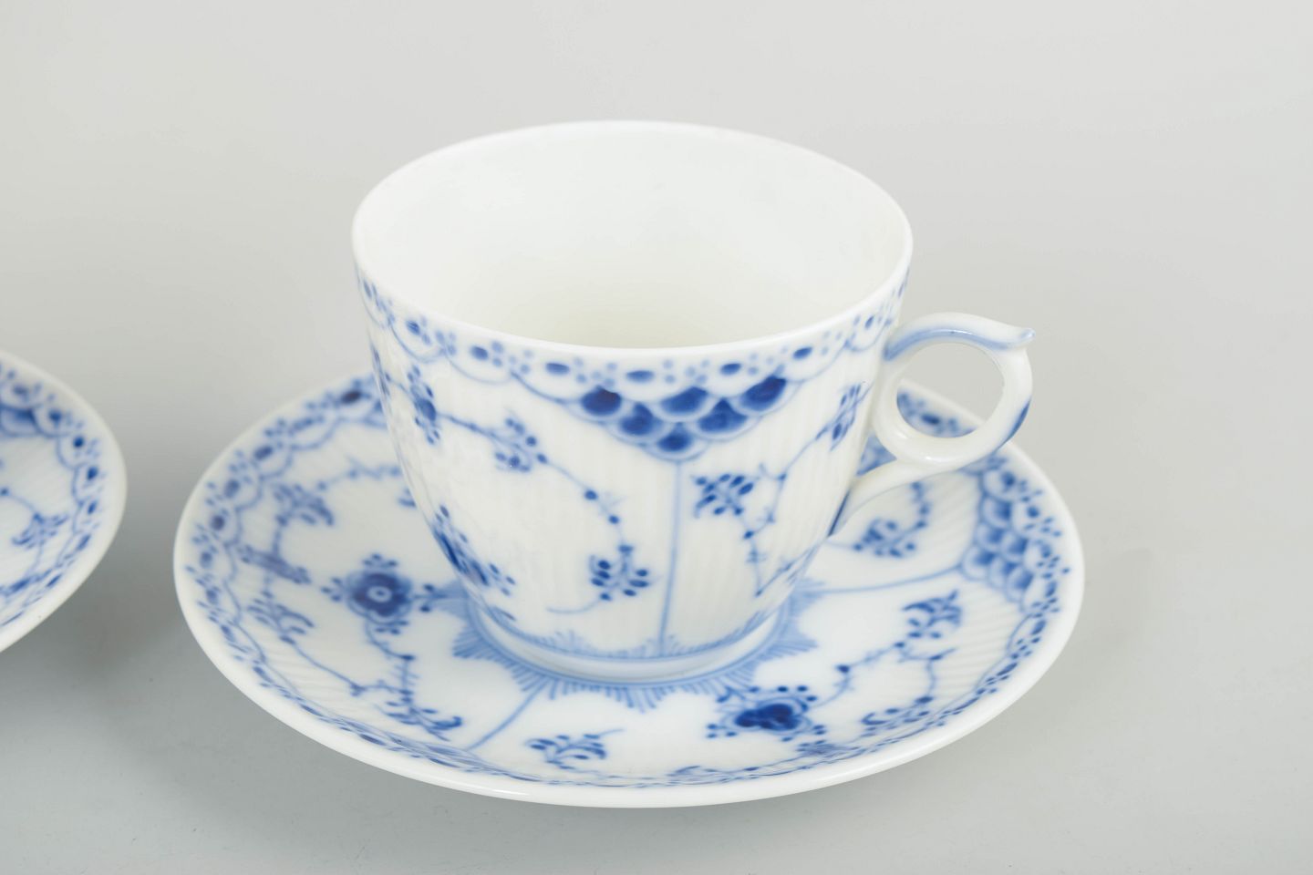 Royal Copenhagen Musselmalet Halvblonde, sæt af to kaffekopper med tilhørende underkopper.