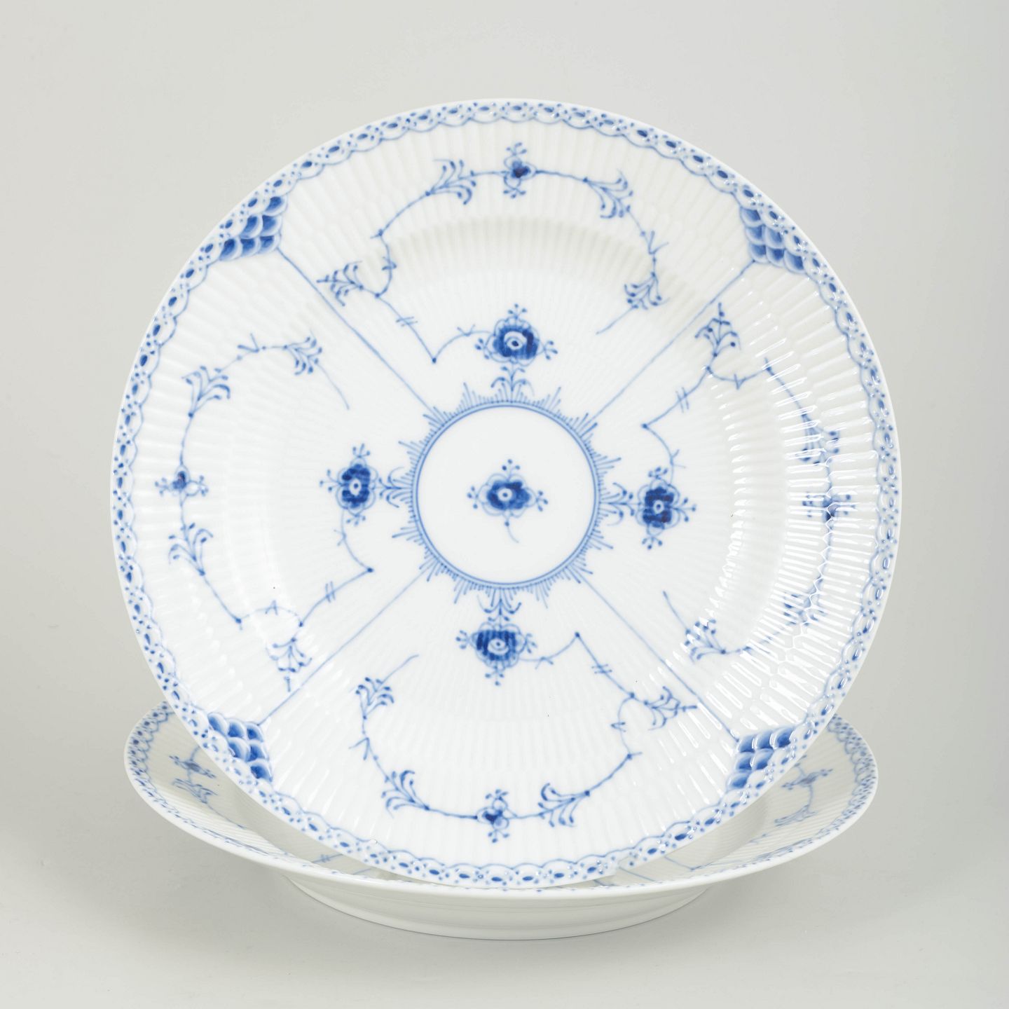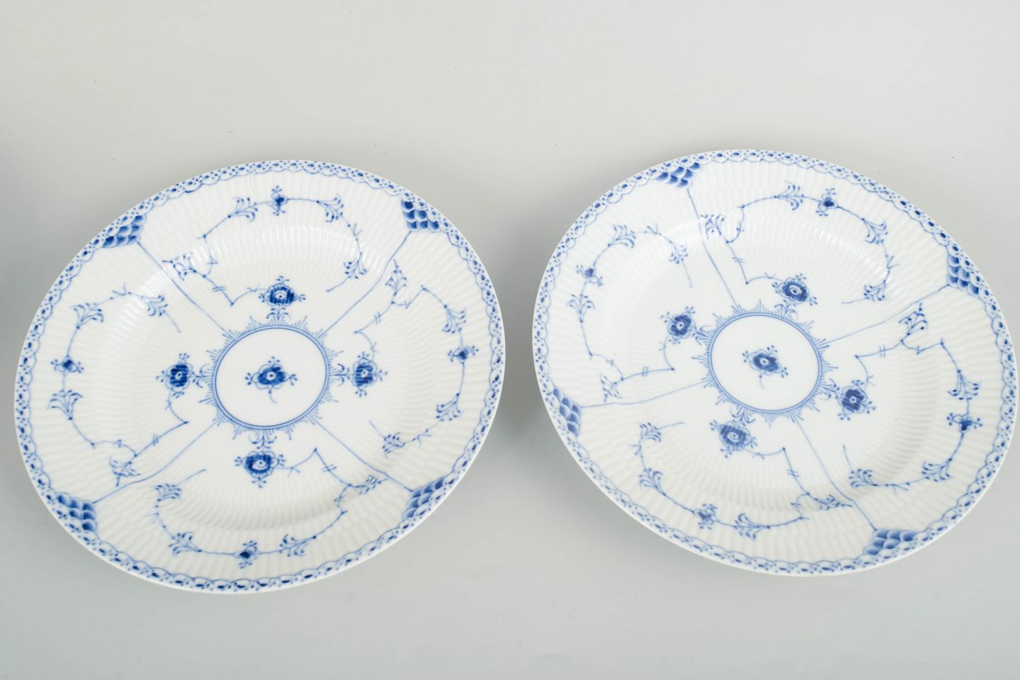 Royal Copenhagen Musselmalet Halvblonde, sæt af to middagstallerkener.