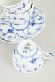 Royal Copenhagen Musselmalet Riflet, sæt af tre mokkakopper med underkopper.
