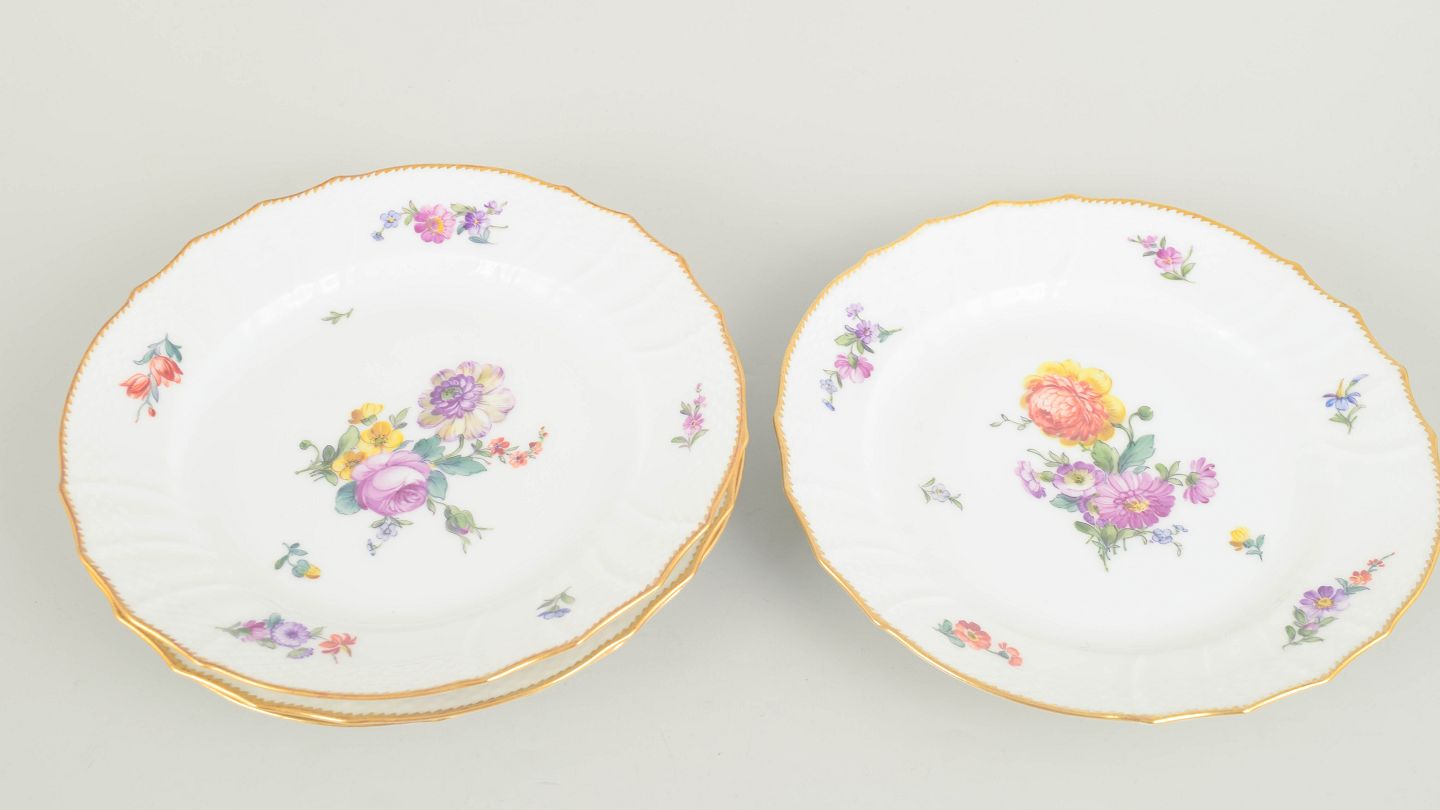 Håndmalet porcelæn dekoreret med saksisk blomst, model 4/1623. Første sortering.