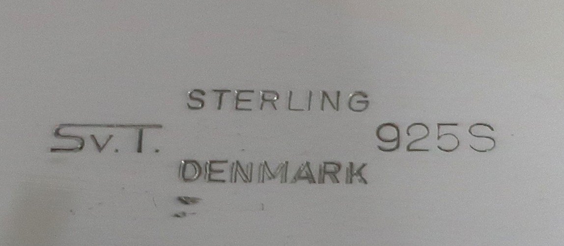 Holland. Sølvskål med blå glas indsats (835). Læng