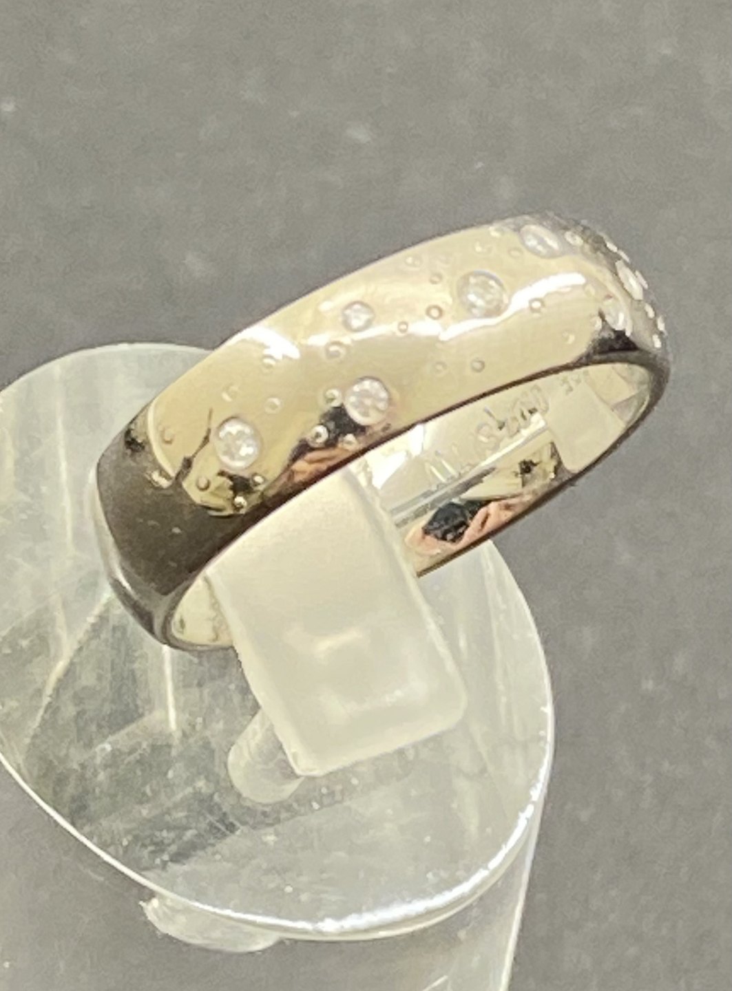 14 karat hvid guld ring størrelse 57 med 7 diamanter vægt 9,4 gram emne nr. 626602