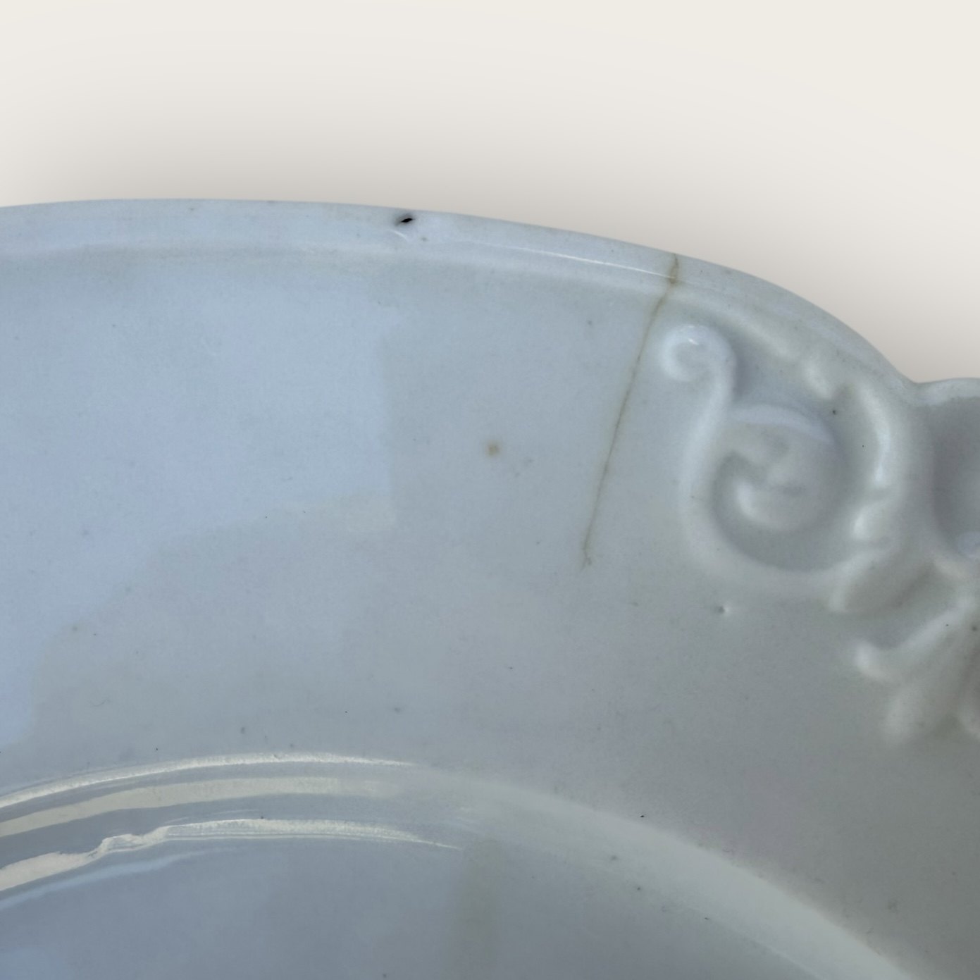 Royal Copenhagen, Rococo white, flat plate, 26 cm in diameter, has a small hairline crack (see photo)