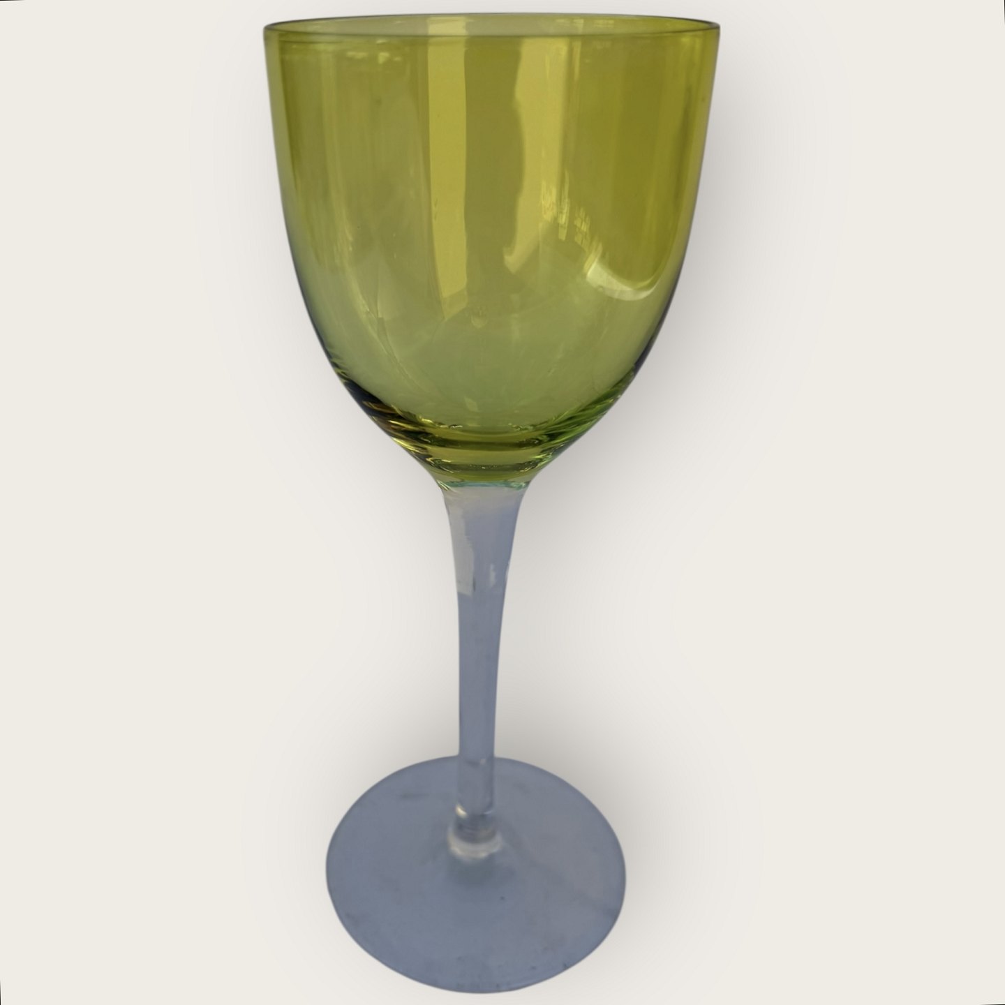 Baccarat, Perfection, Rhine wine glass on a high stem and with a green bowl, 19cm high, fine condition.