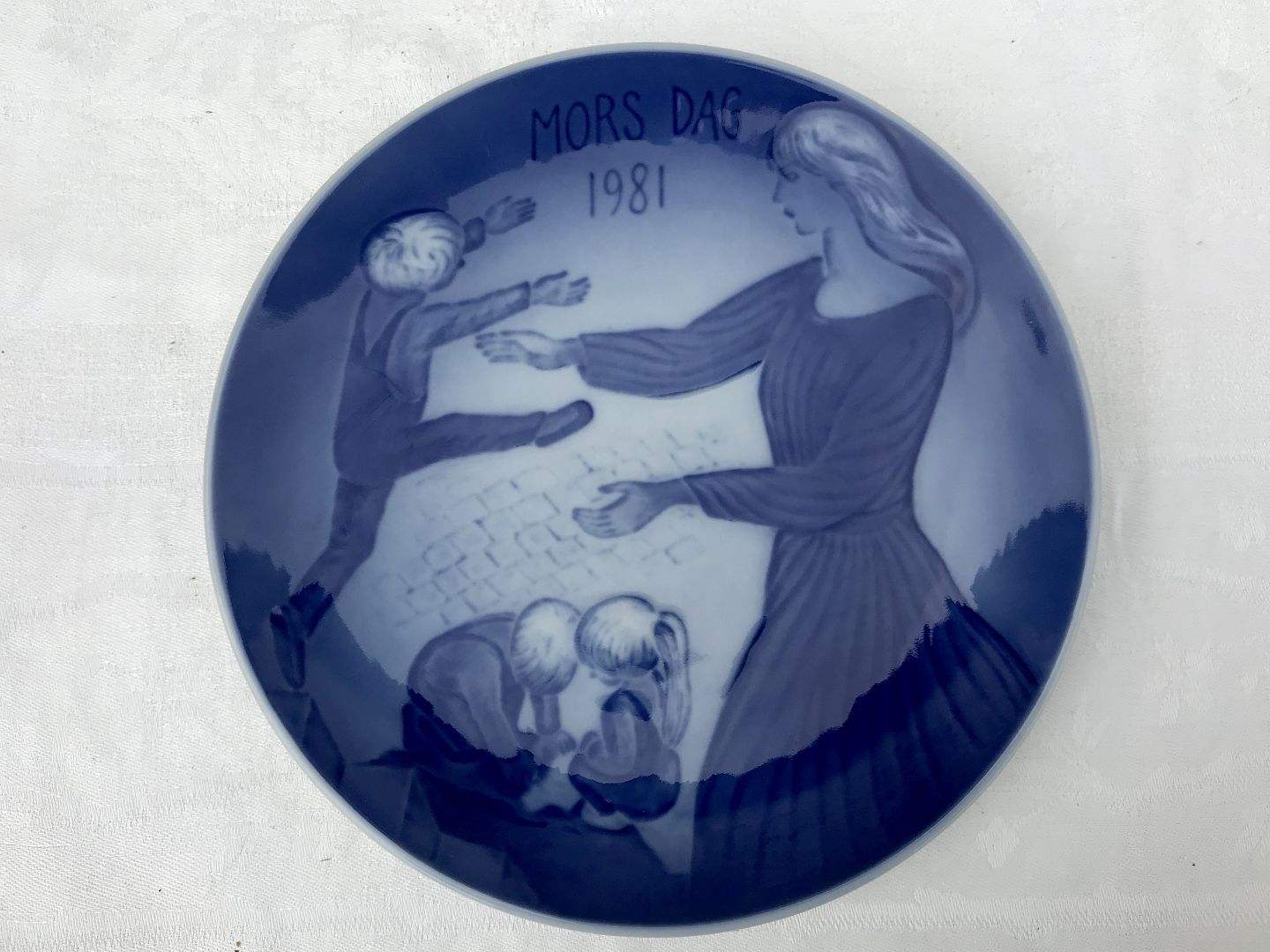 Royal Copenhagen, Mors dag platte, 1981, Mor med barn, 18cm i diameter, Design Ib Spang Olsen *Perfekt stand*