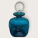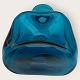 Kastrup Glasværk, Blå klukflaske med flad klar prop, 19x11x7cm *pæn brugt stand*