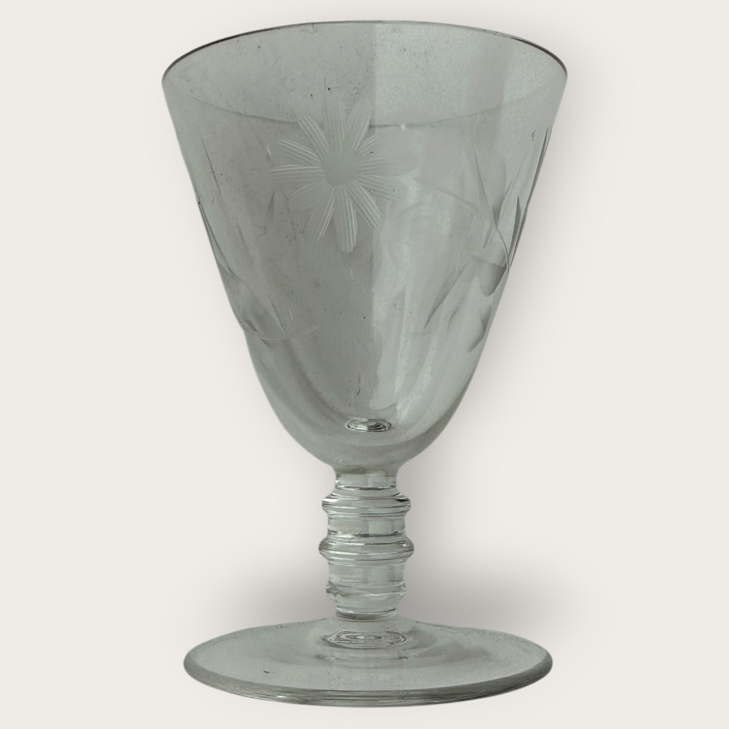 Portvinsglas med blomsterslibninger
