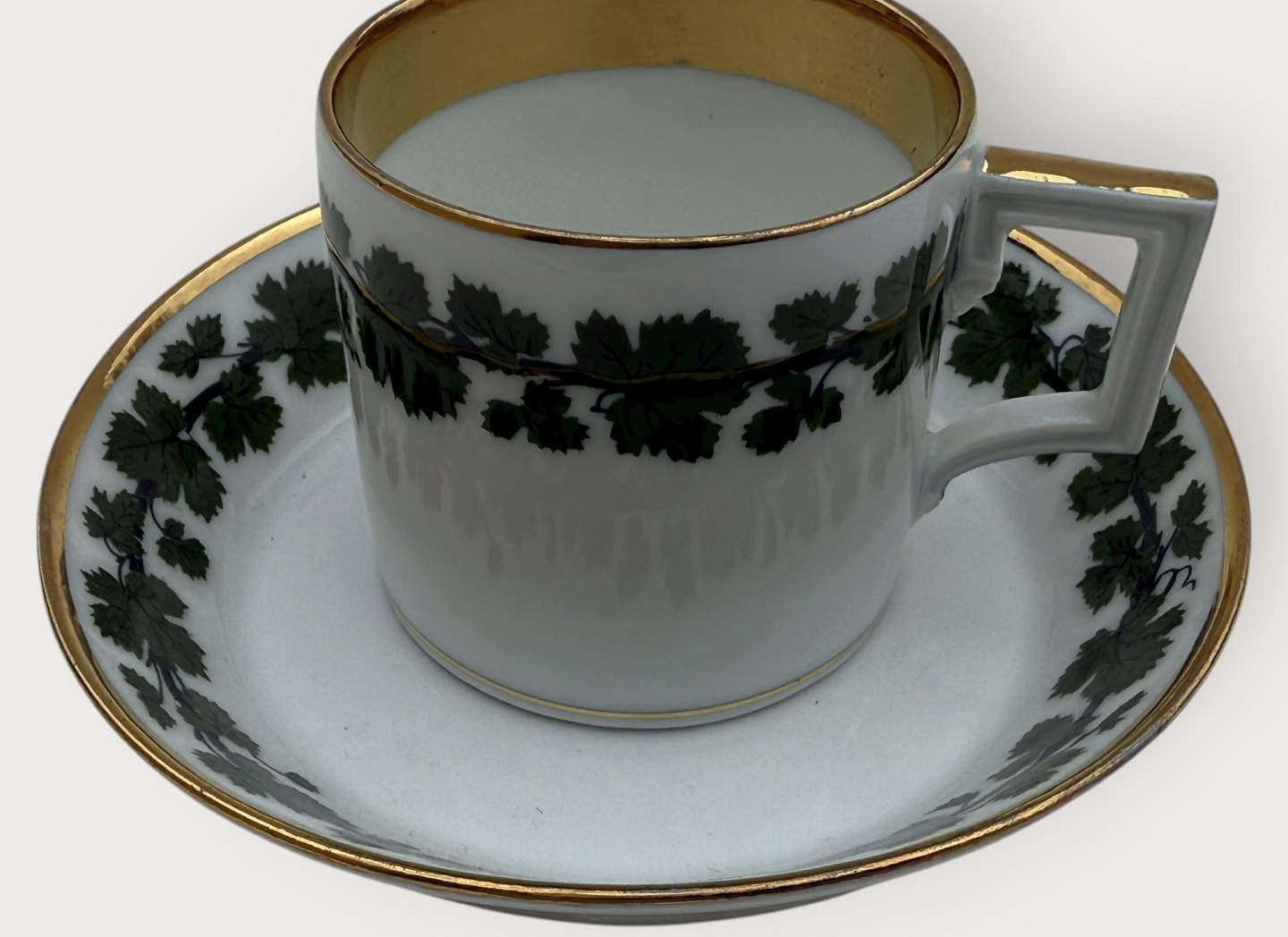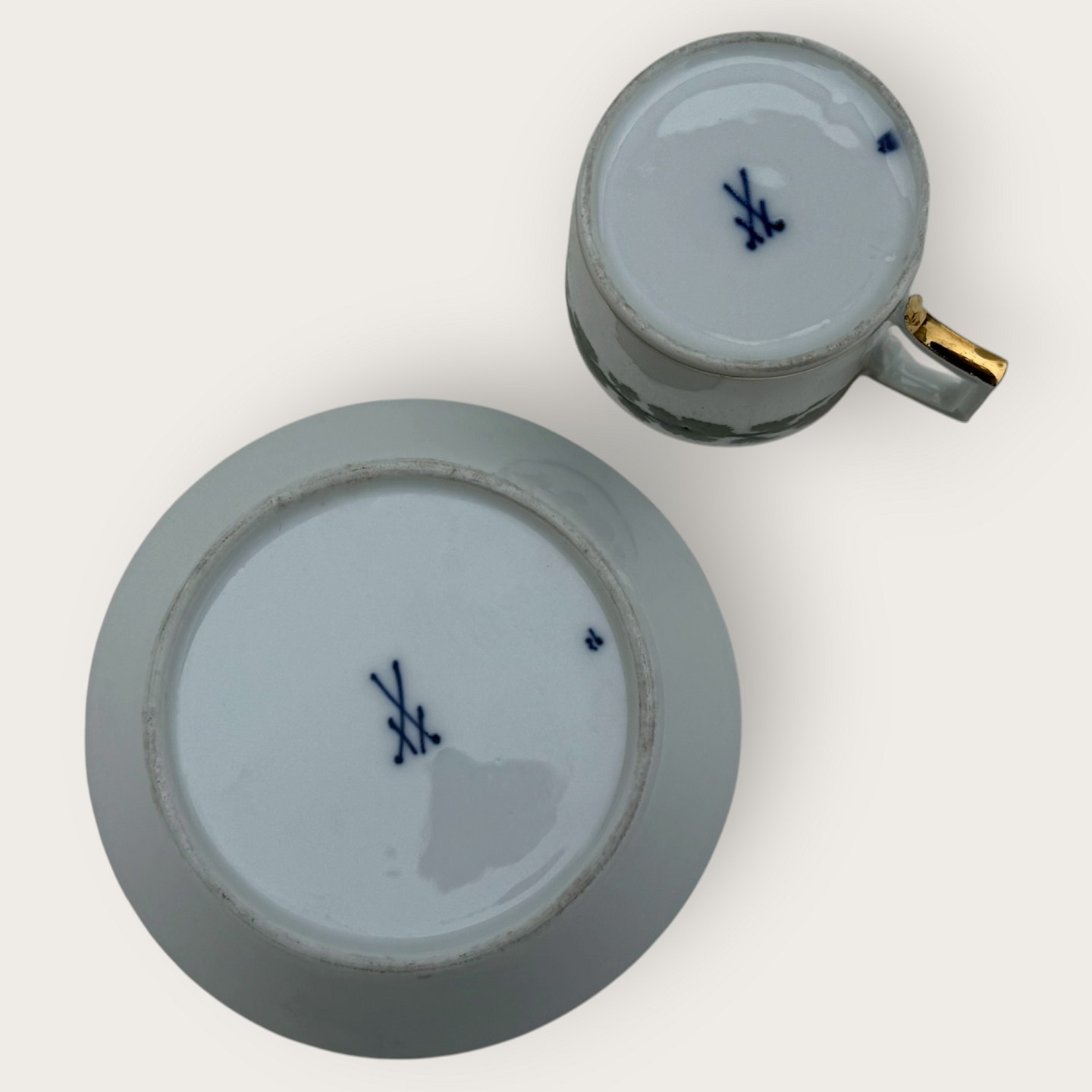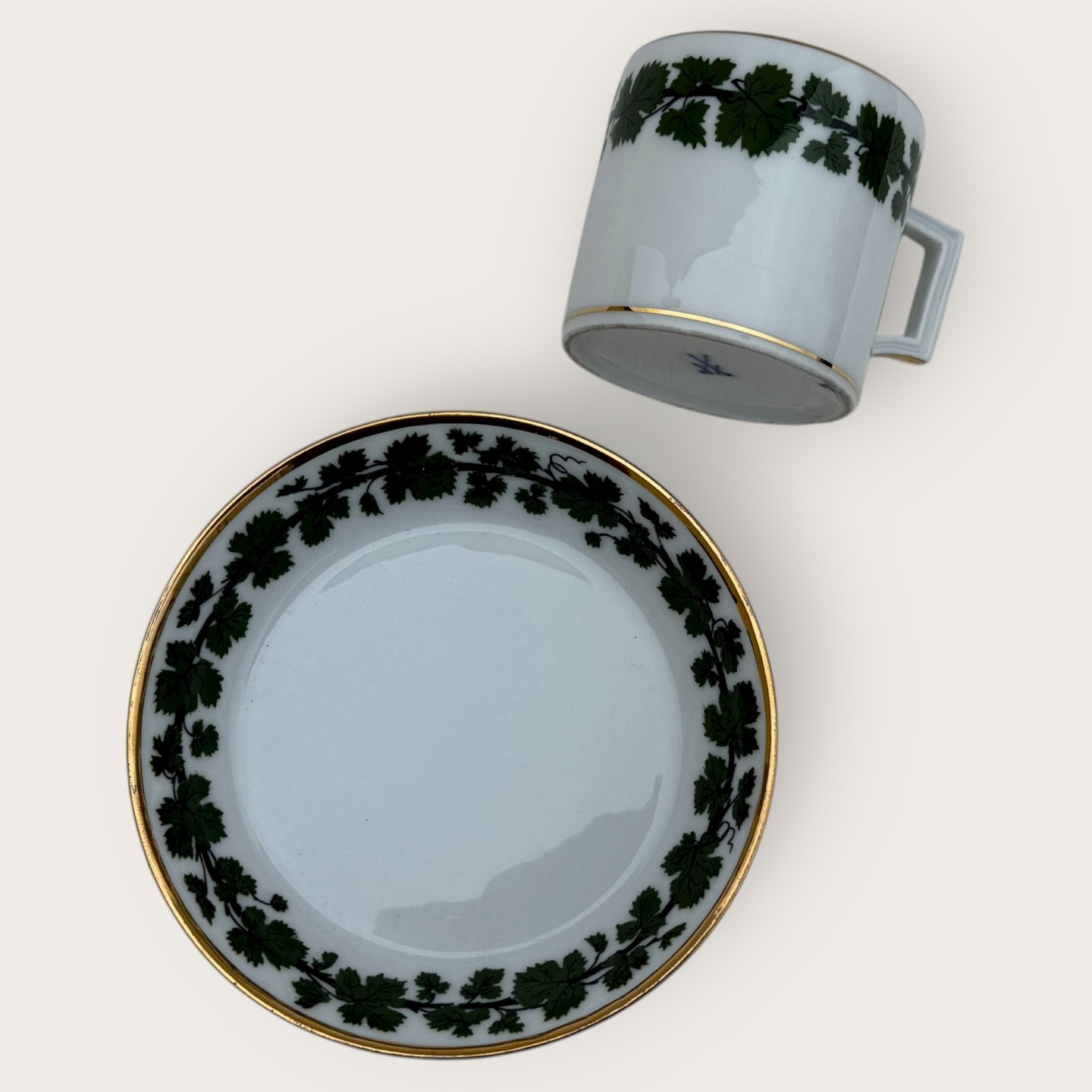 Meissen, Lille kaffekop med vinløv og guldkanter, højde 5cm, diameter 5cm *fin stand*