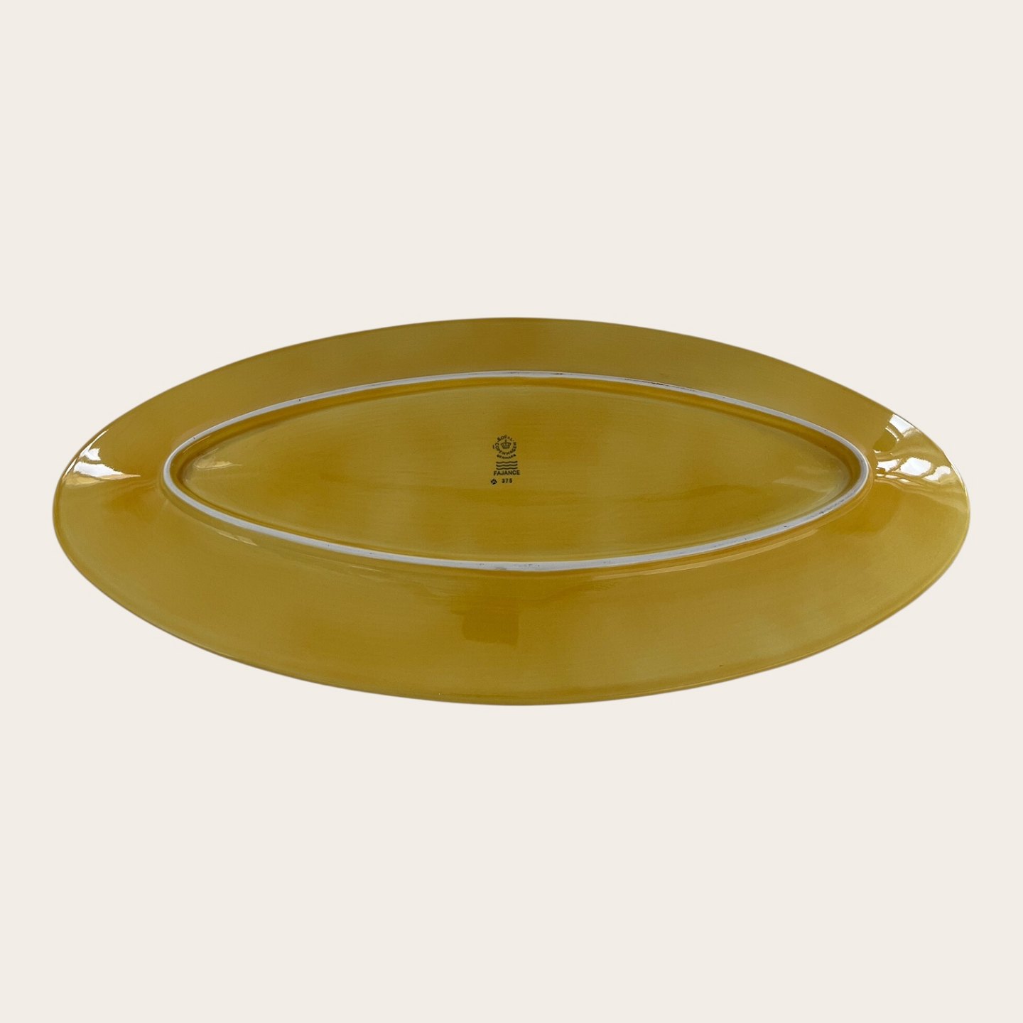 Royal Copenhagen, Aluminia, Stort fad, Gul #375, 1. sortering, 57,5cm lang, 26cm bred, Design Ursula Munch Petersen *Pæn stand*