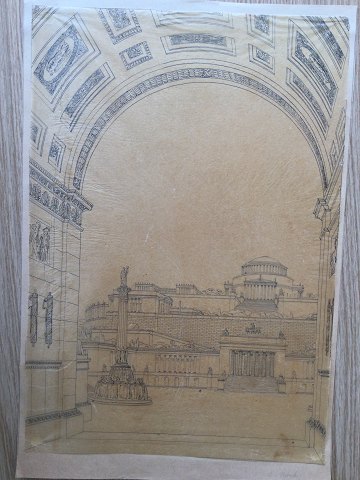 Christian Hetsch (1830-1903): Kig gennem port til Pantheon i Rom. Radering på japanpapir monteret på papir. Usigneret Betegnet: C. Hetsch Uden ramme. Japanpapir 44x31 - Papir 47x32 15725