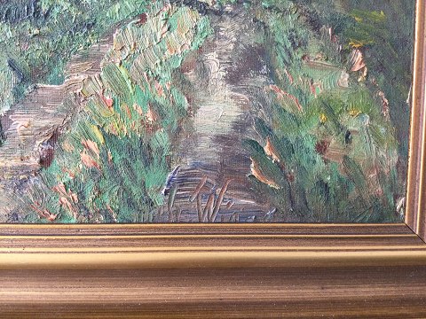 Richard Wissntal (20 årh): Landskab med blomstrende busk. Olie på plade. Sign.: Rich. Wissntal bagpå plade - Maleri af Richard Wissntal. 20x22 (24x25)