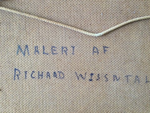 Richard Wissntal (20 årh): Landskab med blomstrende busk. Olie på plade. Sign.: Rich. Wissntal bagpå plade - Maleri af Richard Wissntal. 20x22 (24x25)