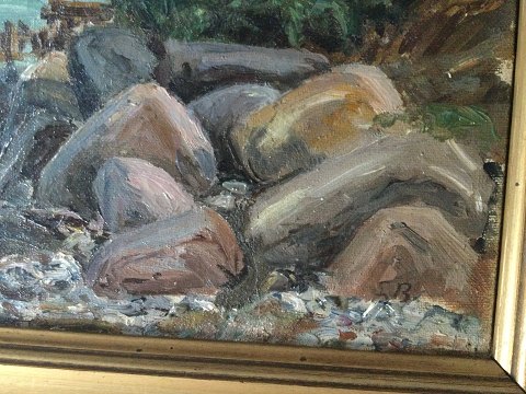 Louise Bonfils (1856-1933): Kystparti Olie på lærred Sign.: LB 23x57 (31x65) 26023
