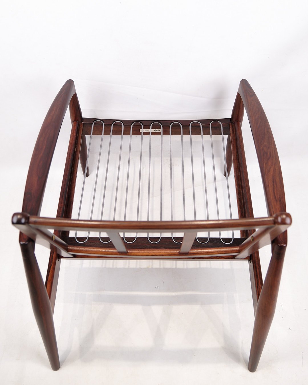 Kai Kristiansen “Papirknivstolen”, model 121. Palisander og sort læder. Produceret af Magnus Olesen, 1950’erne.
