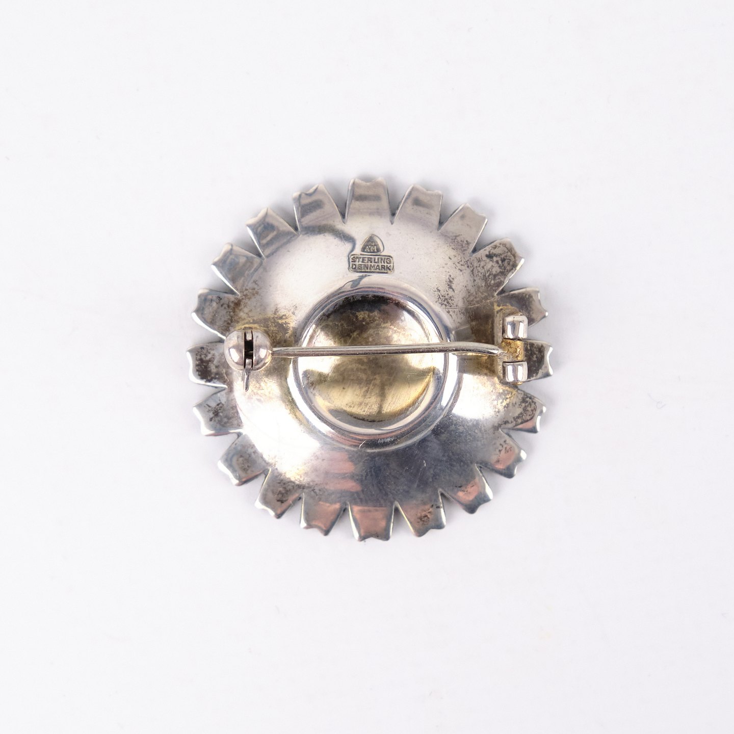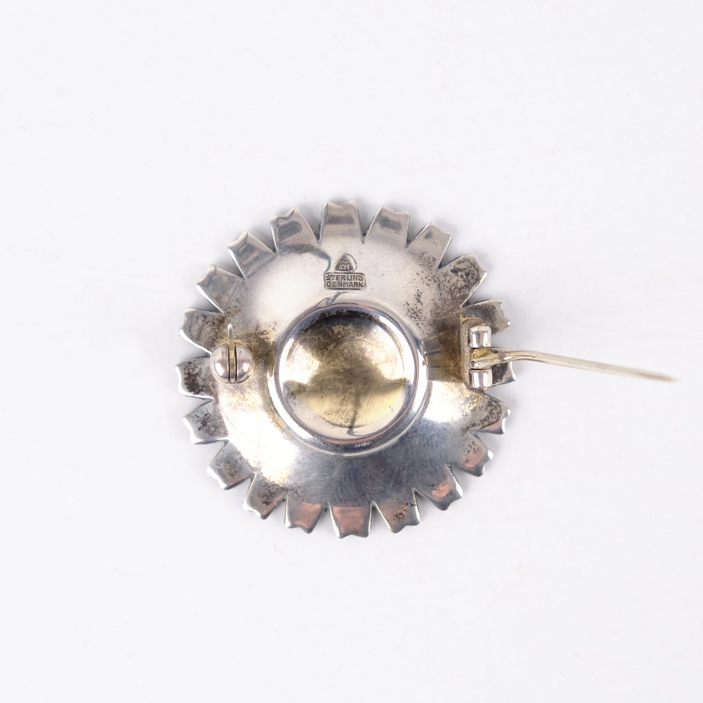 Brooch by Anton Michelsen from the 1940s, marked AM Sterling Denmark and gilded. The enamel is fully intact, and the piece features classic craftsmanship and elegant period design. A fine collectible from a renowned Danish silversmith.