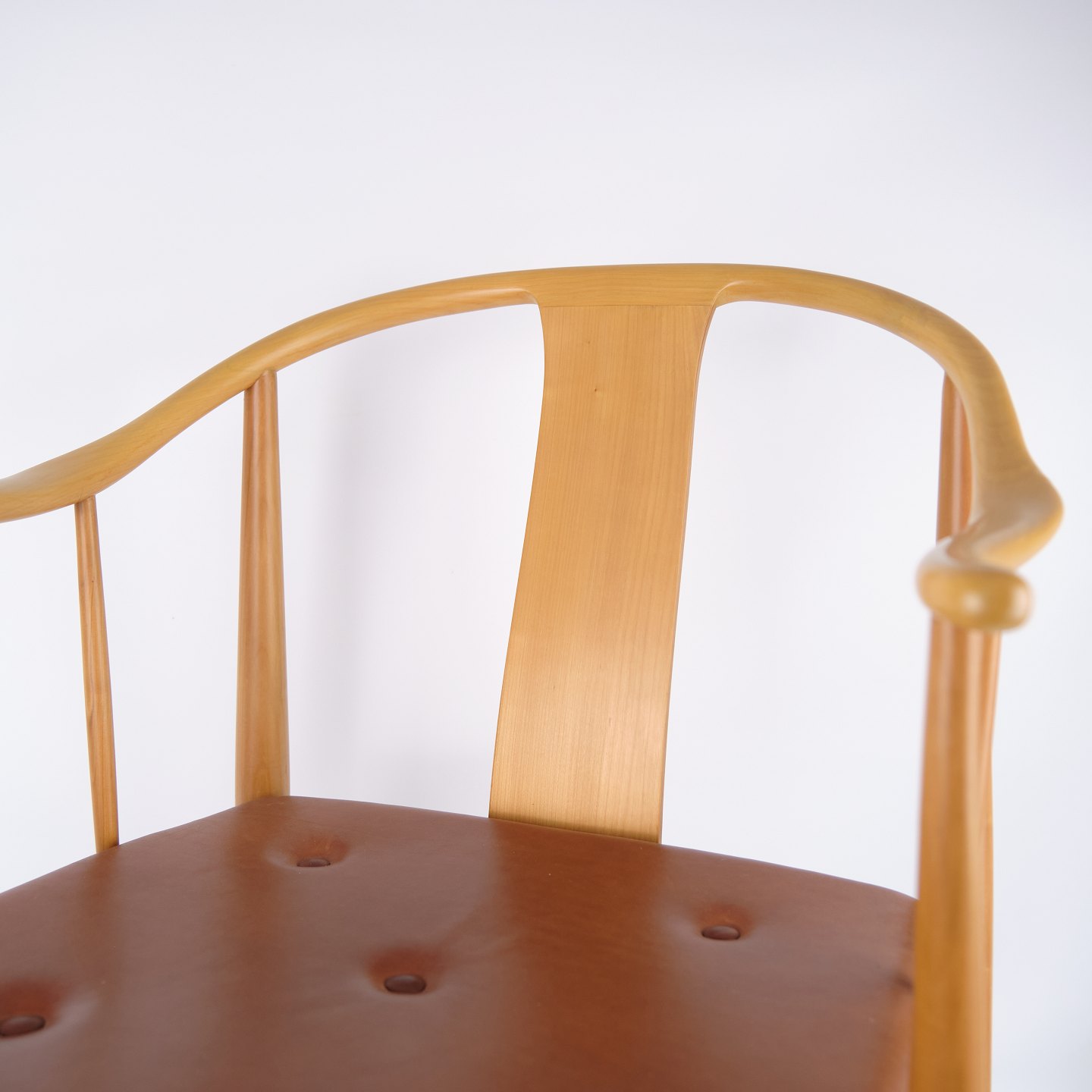 China Chair FH4283 by Hans J. Wegner for Fritz Hansen. Cherry wood with cognac leather seat. Danish design icon.