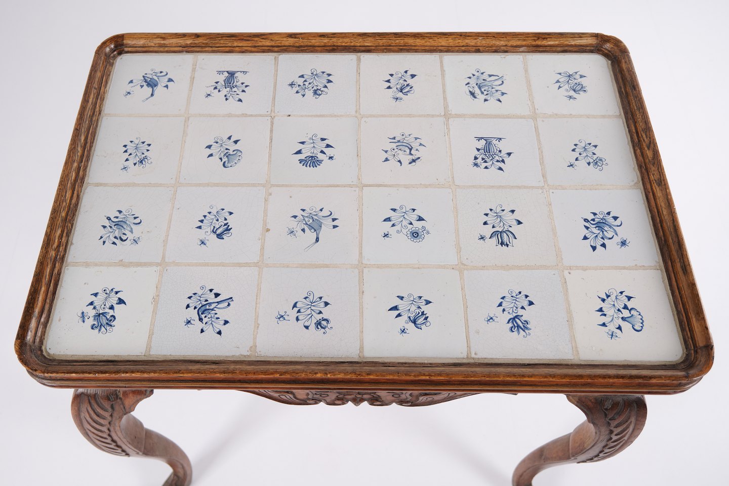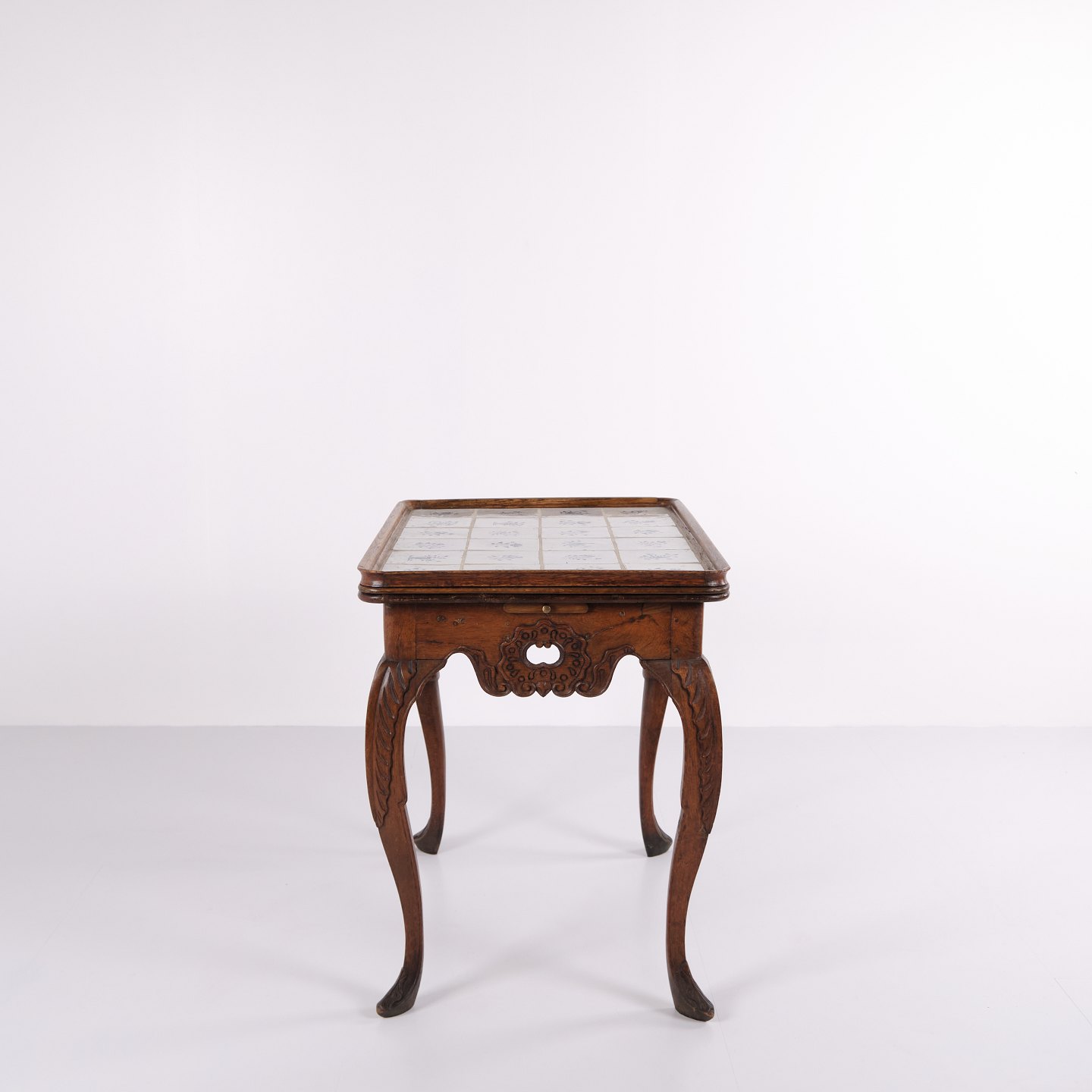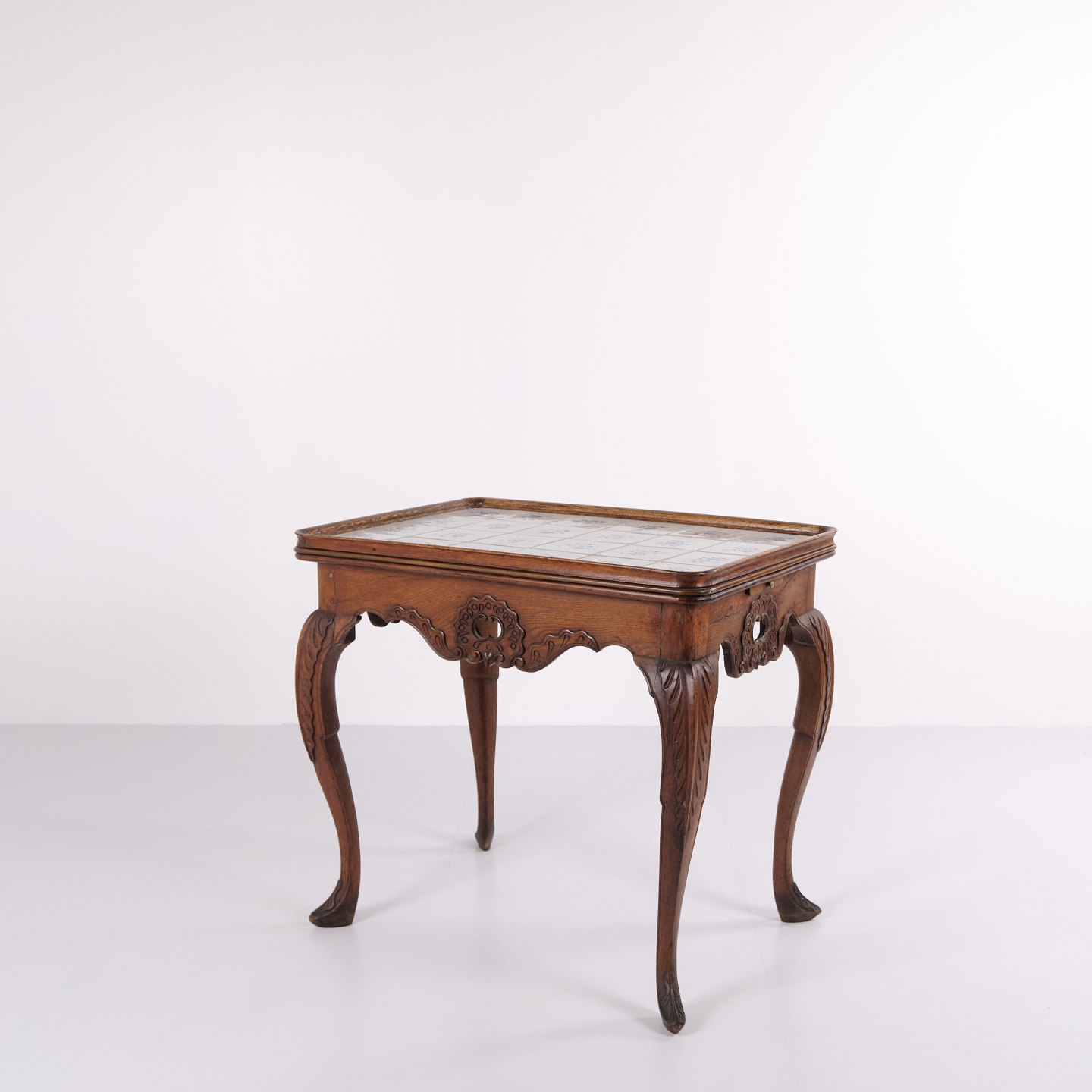 Kontakt os vedrørende prisAntikt Flisebord - Patineret Egetræ - Rokoko Stil - Hollandske fliser - 1780