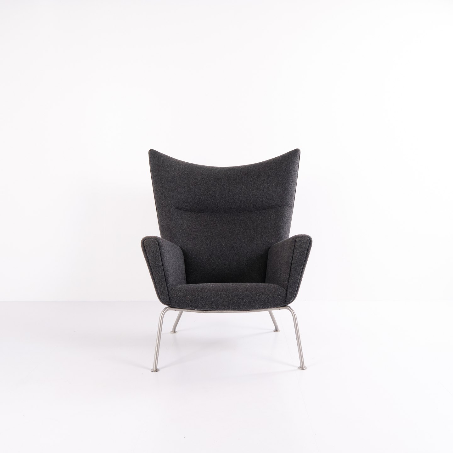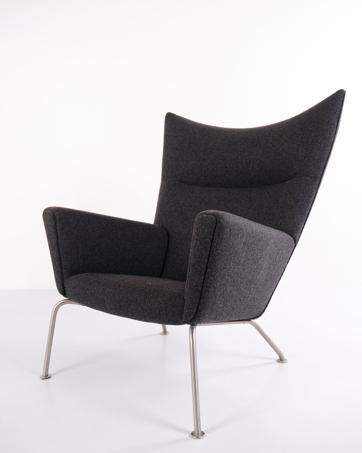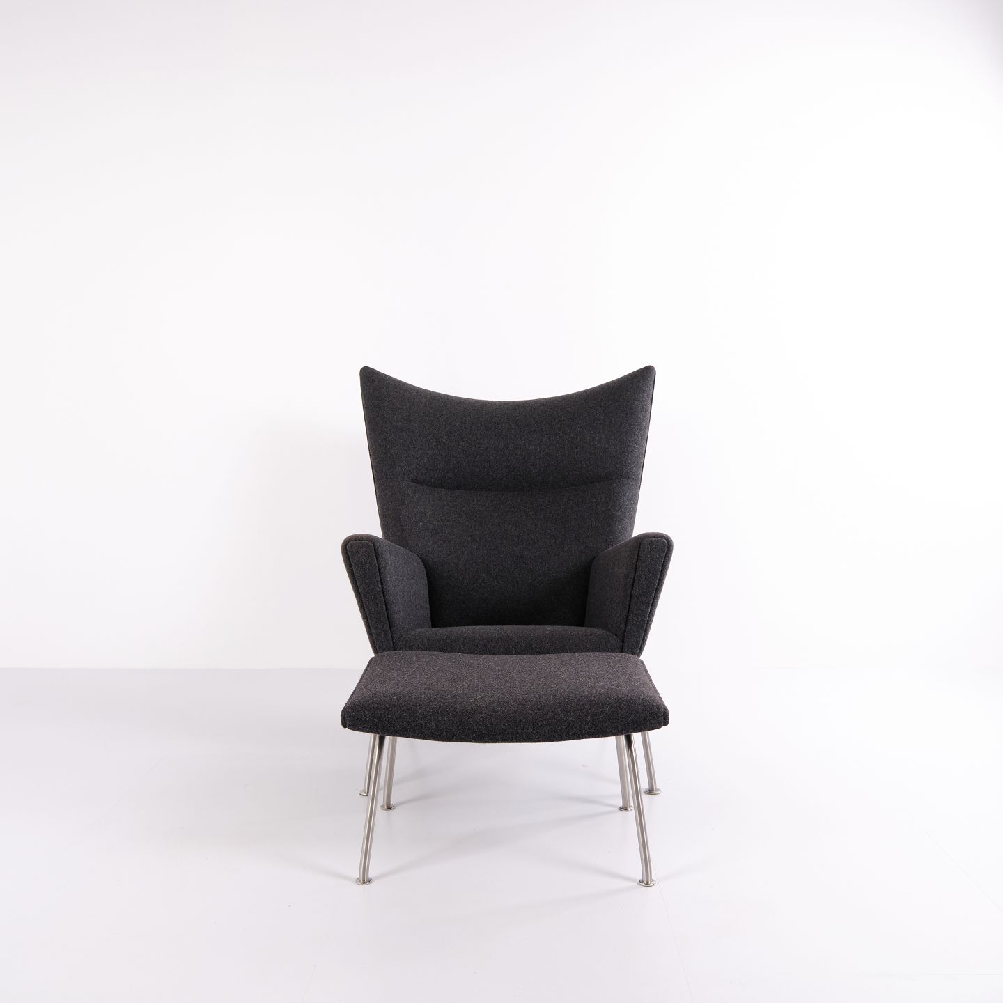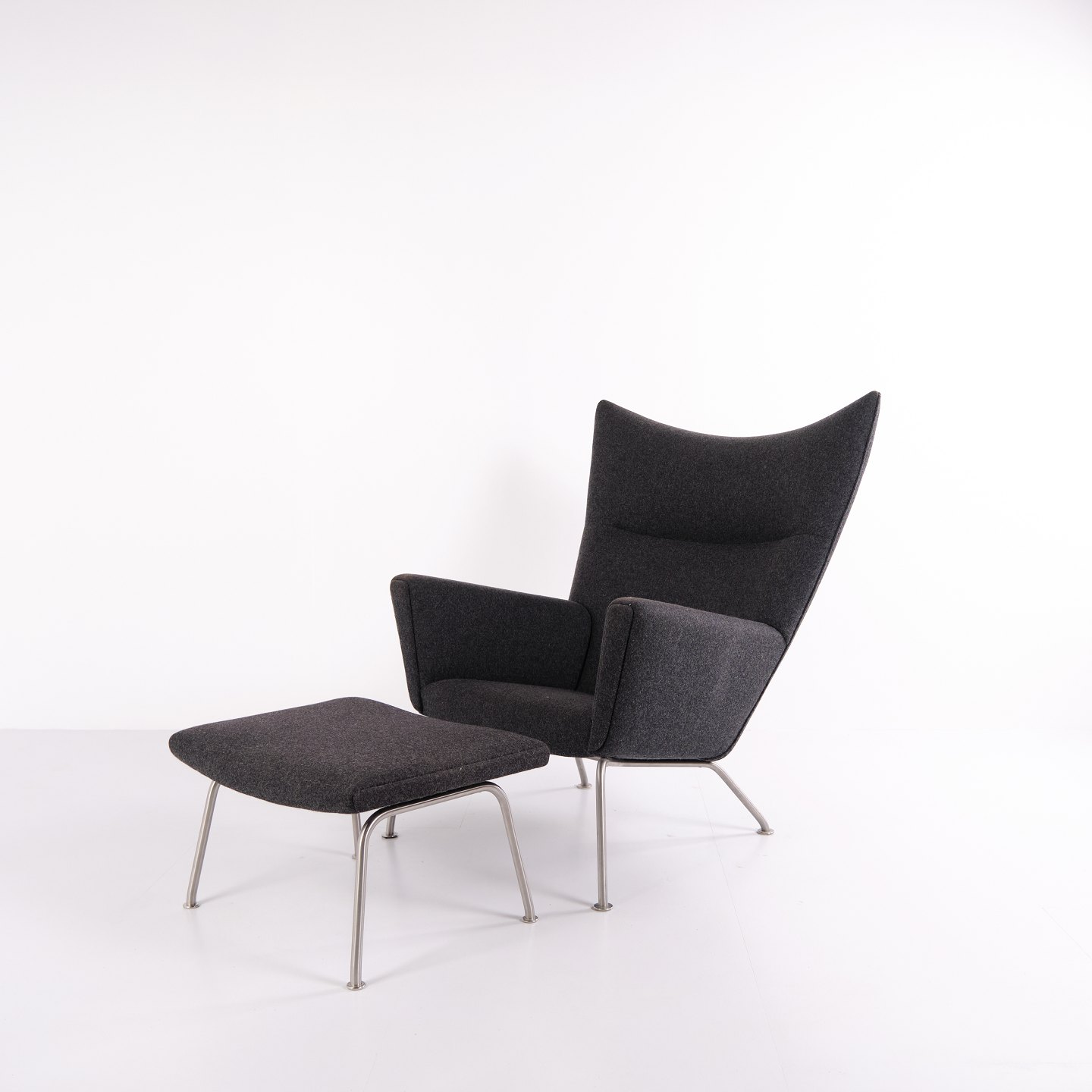 Wingchair – Hans J. Wegner – Model CH445 – Carl Hansen & Søn – Gråt Hallingdal – Med skammel