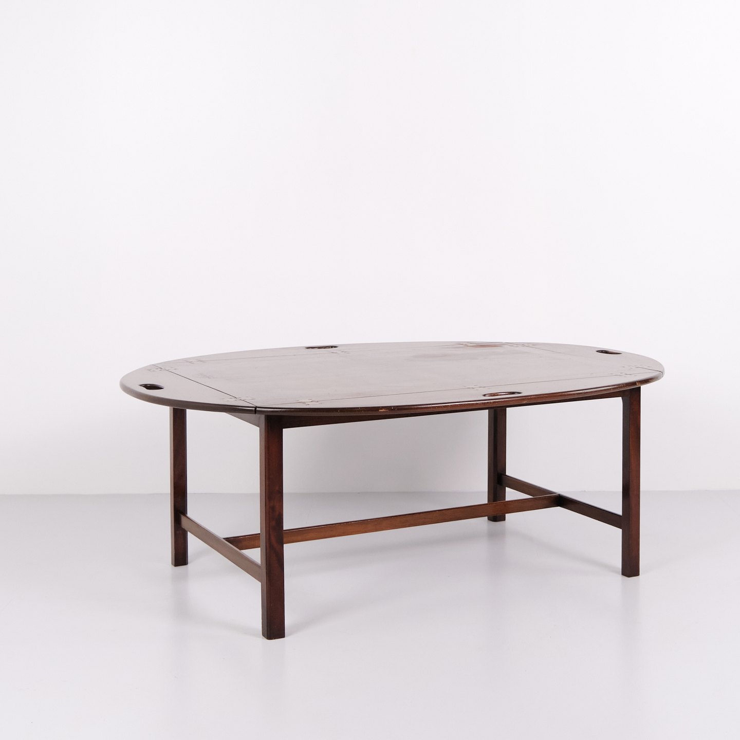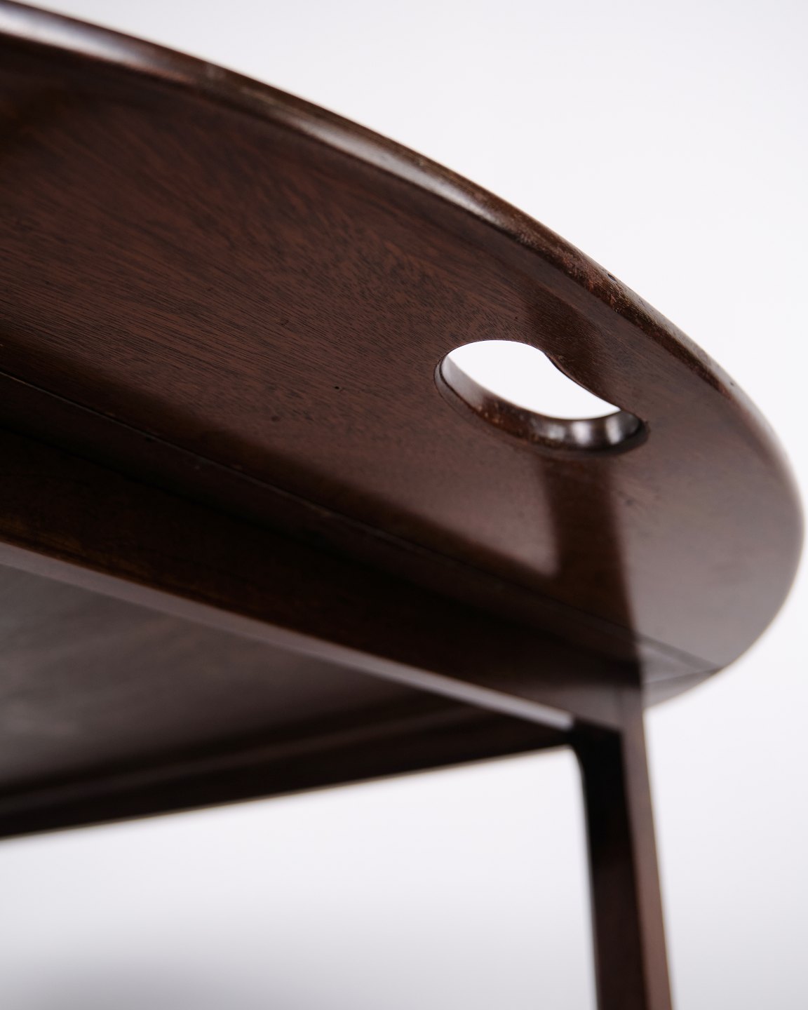 Butlerbord i mahogni med messingbeslag fra 1930’erne. Engelsk design med klassisk udtryk og funktionelt formsprog.