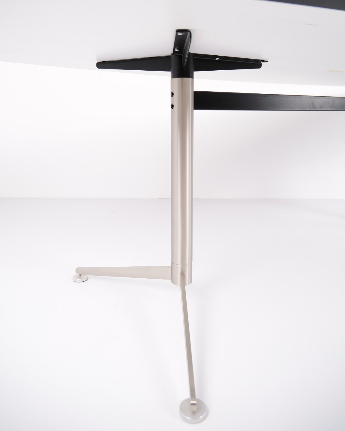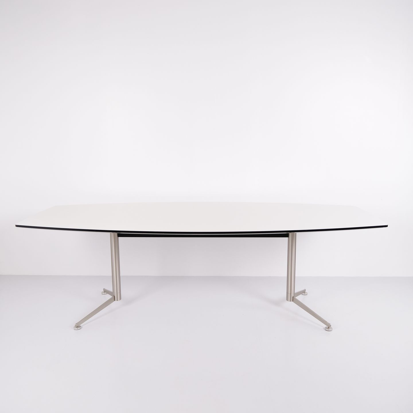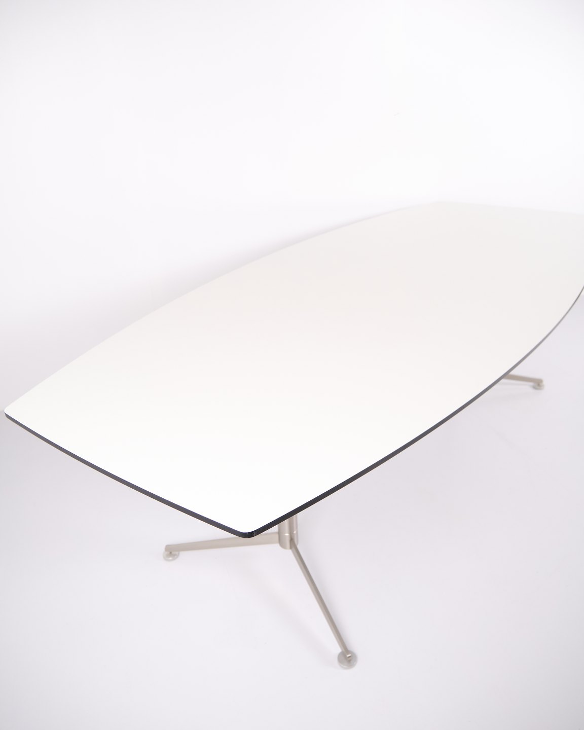 Paustian konferencebord model SP64 Spinal i hvid laminat med stel i børstet stål. Dansk design med funktionelt og moderne udtryk.