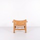 Børge Mogensen Den Spanske Stol model BM2226 i naturligt patineret kernelæder fra 1960’erne. Klassisk dansk designikon med robust udtryk.