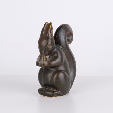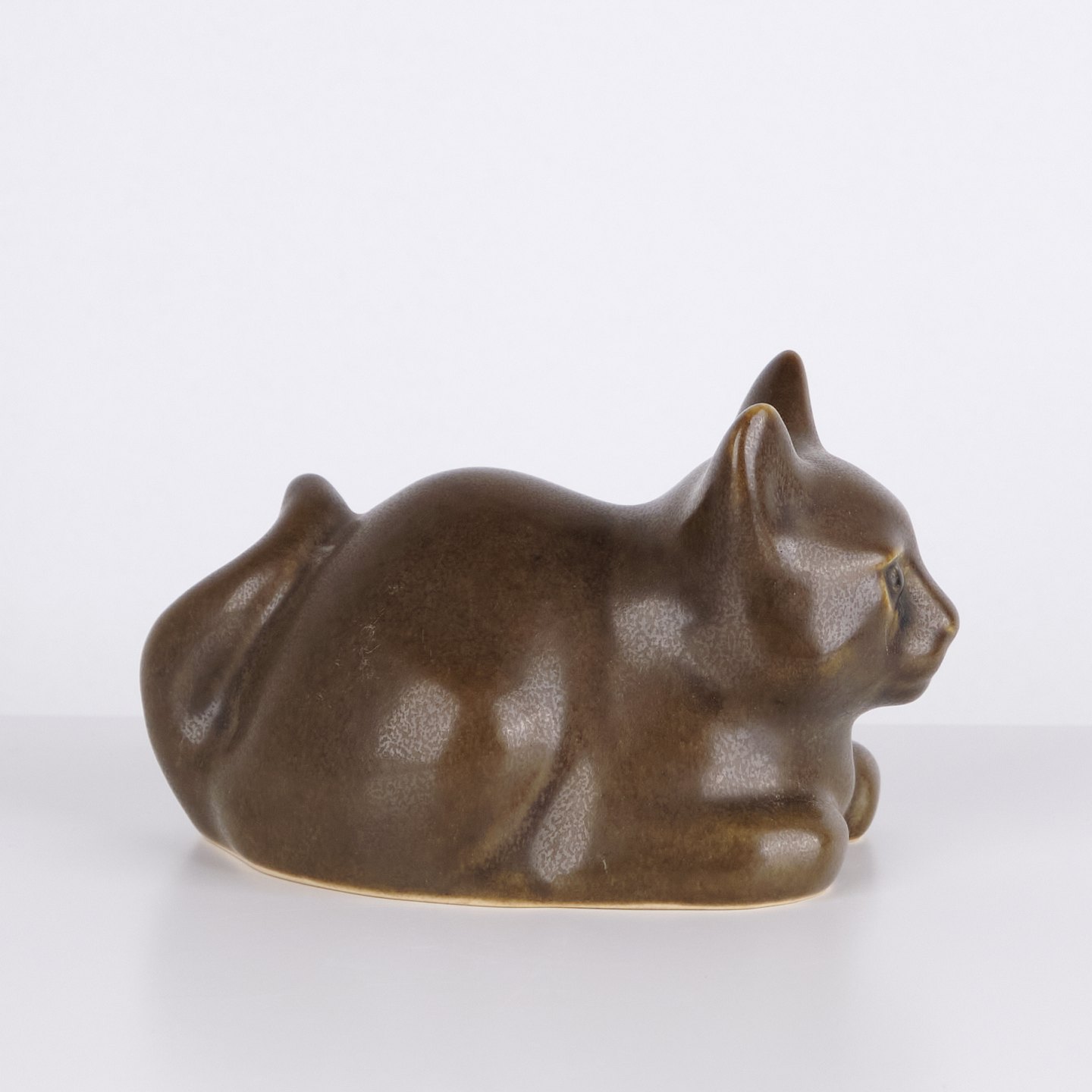 Kattefigur af Knud Basse udført som vase i brun glaseret keramik.