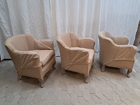3 Lænestole med stofbetræk, fra 1920erne.