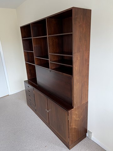 Kai Winding to-delt reolsystem, bestående af skænk samt reol m. skriveklap.