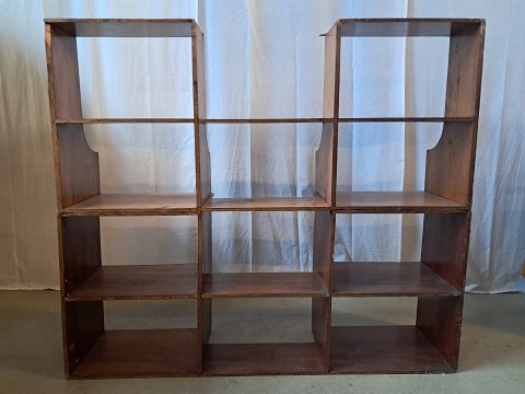 Reol i fineret mahogni og massivt fyrretræ, fra 1900erne.