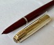 Skriveklar vintage fyldepen: Bordeaux Parker 51 fyldepen med guld double hætte. I god stand. Klar til at blive brugt. Ingen skader eller reparationer. PERSONLIGT NAVN INDGRAVERET. Almindelige brugsspor. L. 14 cm.