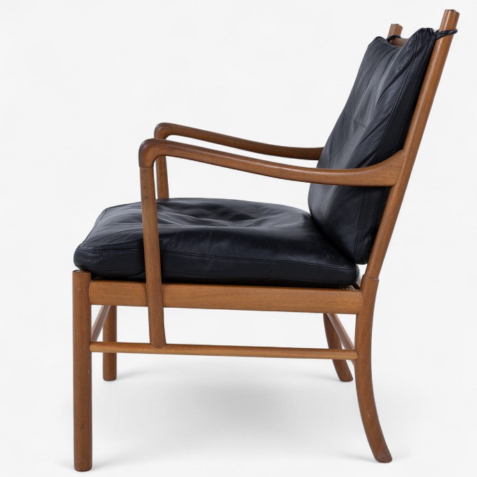 PJ 149 - 'Colonial Chair'-lænestol i mahogni med hynder i sort patineret læder.