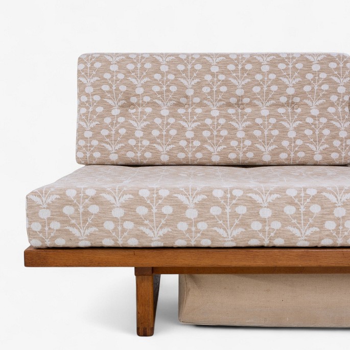 BM 4312 - Daybed i eg med nybetrukkede hynder i 'NIRA'-tekstil (farve: 2) fra Güell Lamadrid med opbevaring.