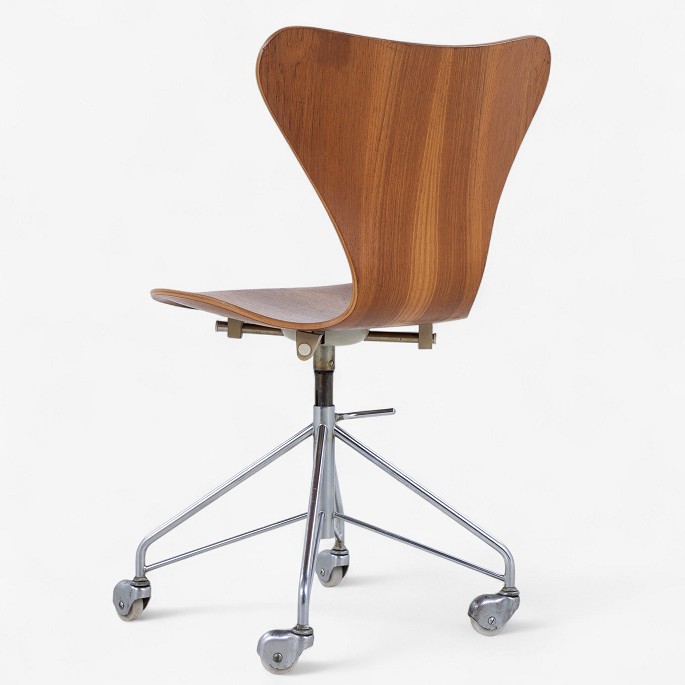 AJ 3117 - 'Syver'-kontorstol i patineret teak på gammelt stel med højdejustering. Stemplet fra producent.