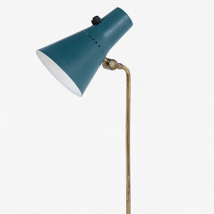 Model KLK 2851 - Gulvlampe i patineret messing og grønlakeret metal.