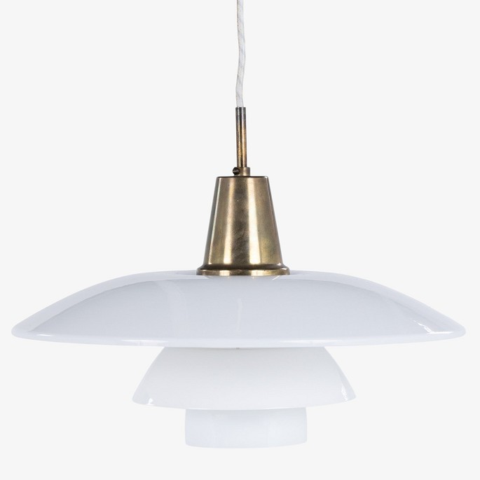 PH 4/3 - Pendel med hvide glasskærme og hejs i messing.