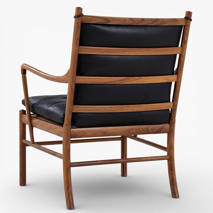PJ 149 - 'Colonial Chair'-lænestol i palisander med hynder i patineret, sort læder. Mærket fra producent.