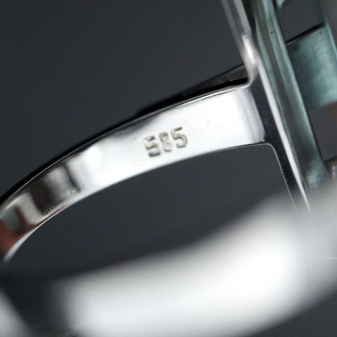 14k White Gold Ring with Aquamarine. Stamped 585. Size 52 mm - US 6. 2,3 x 1,8 cm. / 0,91 x 0,71 inches. Weight 13,8 g. Nice Vintage Condition.