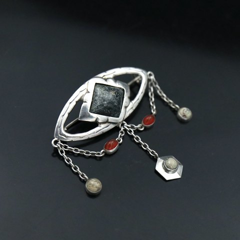 Mogens Ballin 1871-1914. Skønvirke Broche i sølv med sten.