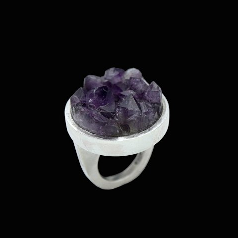 Boy Johansen. Ring i sterling sølv med ametyst. Tegnet og udført hos Svend Erik Boy Johansen - Aarhus. Stemplet BoyJ, 925S. Str. 52 mm. Diam. 2,9 cm. Vægt 32,3 g. Brugt i god stand.
