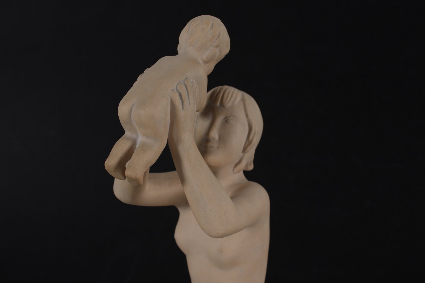 Niels Tvede (1903-1972) Moder med barn figur "Livet" nr. 860 formgjort 1939 fremstillet af uglasseret terracotta Sign: Ipsens Enke + 860 + Denmark + N. Tvede Højde 32 cm Fin stand uden skår eller revner