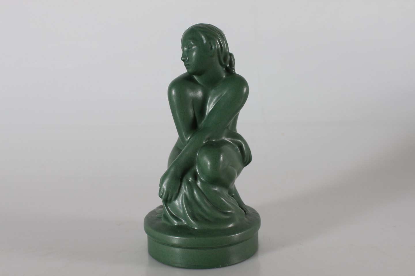 P. Ipsens Enke Figur "Susanne" siddende kvinde nr. 923 formgjort af Holger Christensen Fremstillet af keramik m/jadegrøn glasur Højde 20 cm Fin stand