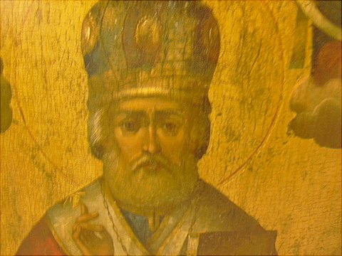 Han var fængslet fordi han Prædikede imod Arius. Følger man udviklingen i portrætterne af den hellige Nicolaj, dukker der en ny type op i slutningen af 1700-tallet, hvor hans hoved nu prydes af en mitra. Samtidig bliver detaljer som hår og skæg mere naturalistiske,