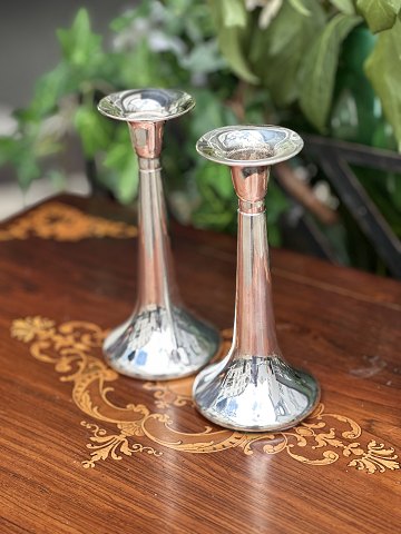 Flot par minimalistiske lysestager i massivt 830 sølv stemplet Hejl , Fredericia . Dansk design ca. 1960-1970