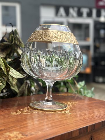 Moser glass goblet crystal, very high quality from the mid-1900s, wide band of gilded 24k gold enamel with engraved flowers in classic baroque H 18 cm W 10 cm